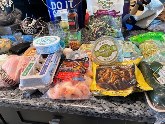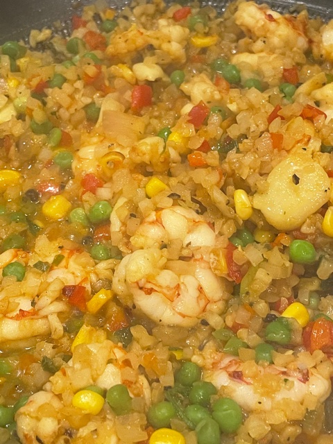 Anyway, in the end I made a great stir-fry of shrimp over cauliflower rice (sans the mushrooms) with mixed veggies. It was healthy and yummy. The Argentinian Red Shrimp from Trader Joe’s were excellent, I highly recommend.