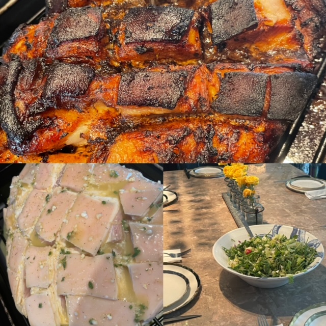 I served zucchini soup as an appetizer. As sides I made roasted asparagus and cauliflower mashed. Message me if you want the cauliflower mashed recipe, it’s really good!