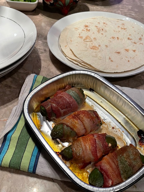 Taco Tuesday has become sort of a tradition at our place. We have our little Tuesday night gang and the super casual, tasty, fun night is something we look forward to after a busy work day. I try to mix it up a bit every week. Some fun taco filling options I’ve recently made include tuna dredged in black pepper and simply sautéed in a little EVOO (cooked rare, you want to see red!) Blackened shrimp is a homerun every time. And of course there’s the blackened chicken. The toppings that are our go to’s are: sour cream, avocado, onion, jalapeño, tomato, shredded cheese, and tons of hot sauce! For a side dish I made some stuffed jalapeño poppers (slit the pepper in the middle, stuff with cream cheese, wrap with a piece of bacon and bake for 20 minutes at 350).