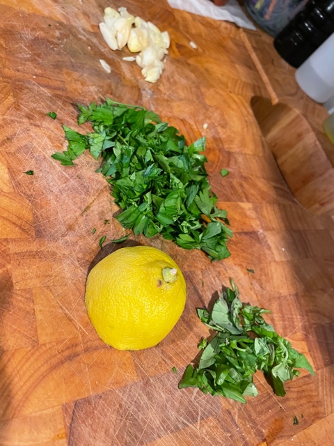 To start I make a marinade of orange juice (3 cups), apple cider vinegar (1/4 cup) and olive oil (1/4 cup) and a ton of minced garlic, oregano, salt, pepper and fresh minced parsley. You want to make enough marinade so that at least half of the pork is covered (you’ll need to flip the pork over after a few hours so all sides get some loving). I usually marinate this over night turning a few times during the process. I’ve tried marinating it for just a few hours and it just wasn’t as good, it really needs to go overnight.