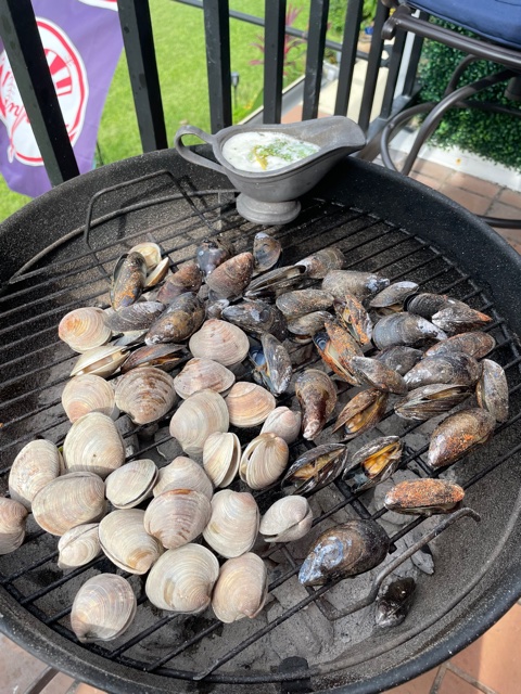 Pro-tip: For the little neck clams, soak them in fresh water with a tablespoon of flour (this makes them release any sand they may be holding onto). Then put on hot grill until they pop open. Serve with melted butter mixed with garlic, a splash of fresh squeezed lemon and a little cilantro or parsley.