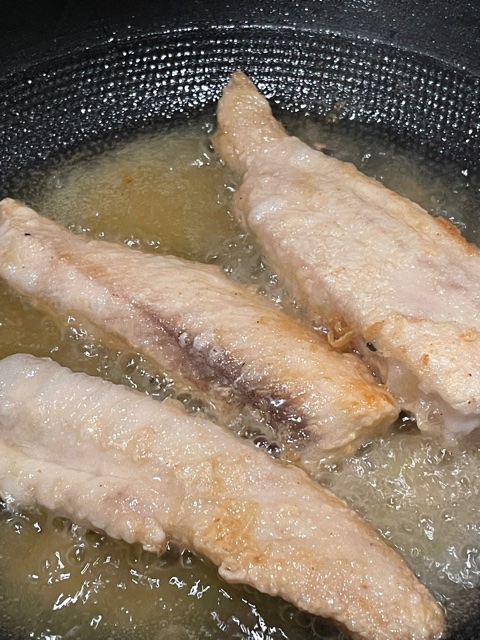 I kept the recipe super simple so not to take away from any of the naturally delicious flavor of the fish. I lightly dredged the fillets in some seasoned (salt, pepper) flour and sautéed it stove top in a little EVOO. Depending on the thickness of the filets, it should not take more than about 3-4 minutes per side.