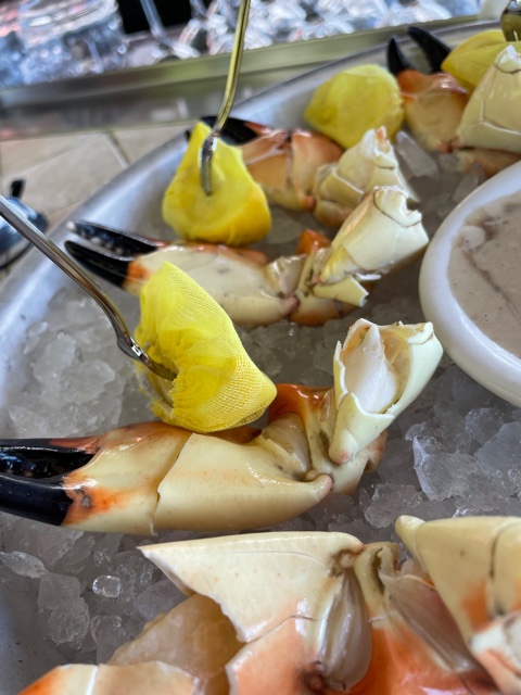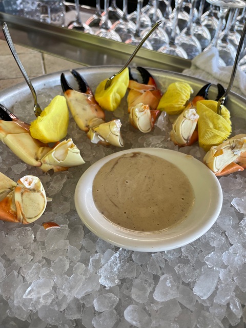 It’s stone crab season here in Clearwater. I’ve never had these yummy little creatures anywhere but here and they’re de-lish (and super expensive!) These were served cracked, cold with lemon & a mild dipping sauce. I highly recommend you trying these if you’re in the area.