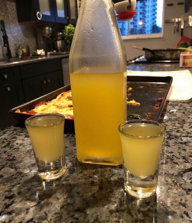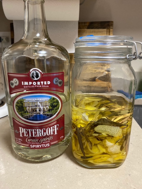 The making of the Limoncello is not a stealth process. First the procurement of ten organic (a must) lemons. Then to find olive leaves (we found these on Amazon – shocking, I know). Then the pure alcohol (see picture below) in Florida we could only find 75% alcohol but in NYC we were able to find 95%. Note that the proof is half the alcohol content.