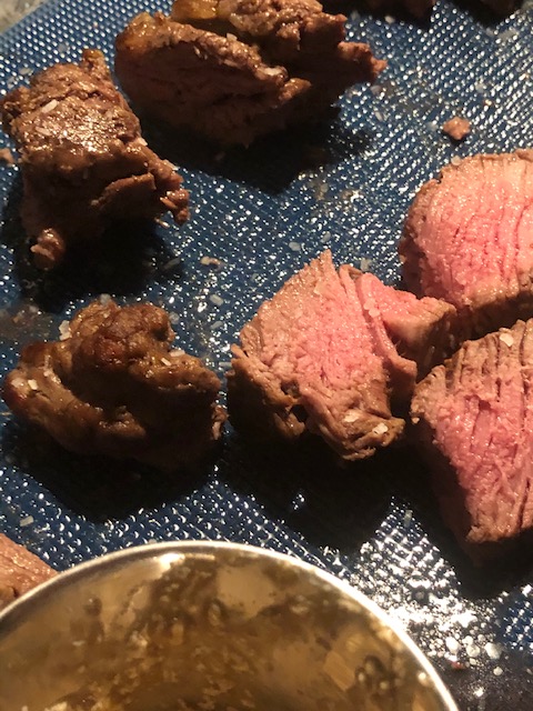 Sometimes you just need a steak. Simply grilled, with a rich porcini sauce on the side – to make it just a little fancy. My hubby won the on going battle of filet mignon vs. ribeye tonight, so this tender little beauty was prepared by him with the porcini recipe from a great chef we know. Pro-tip – bring steak (and any other meat you’re preparing) to room temperature before cooking. This will result in more even cooking and a juicier end product, I promise!