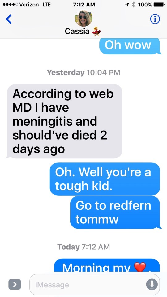 WebMD ← Previous Next → Daily crisis In addition to the day’s average stress, I get on a regular basis hysterical texts from Cass.